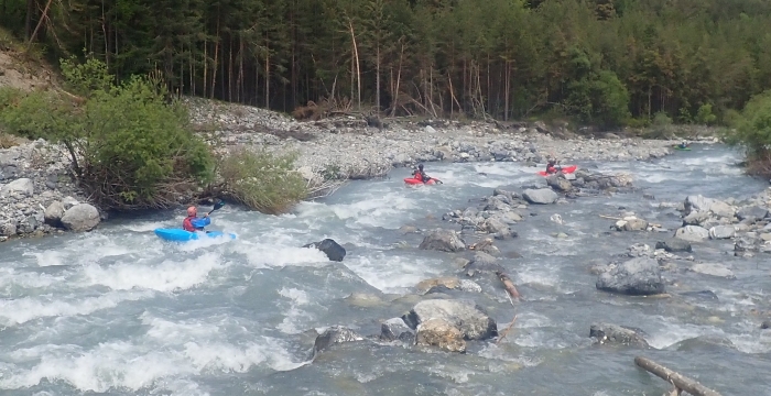 Menno had al half besloten om zichzelf en zijn boot te sparen voor de Germanasca en de aanblik van de steile keienhelling aan de instap was niet van die aard om zijn mening te veranderen. De rest, al gewoon aan bumpy rides van de Onde en de Gyr, vond het best en stapte in voor een veronderstelde snelle run.
