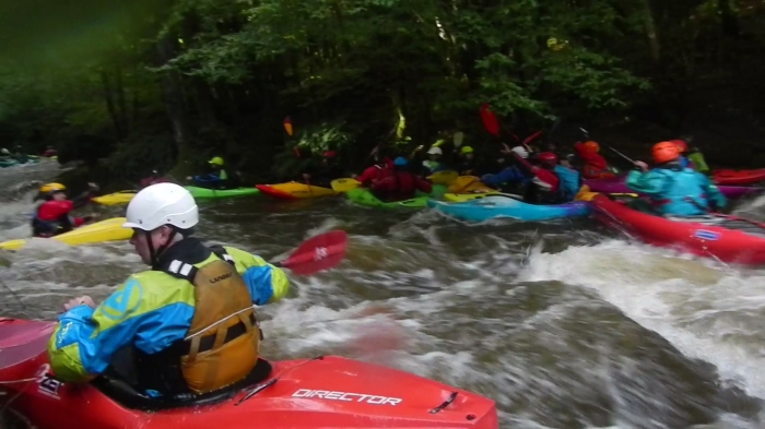 Kajakfestival Rallye de la Cure, veel Fransen van over heel het land, ook veel Belgen oa clubs van Mol, Brugge, Leuven, Hasselt, Charleroi, ...