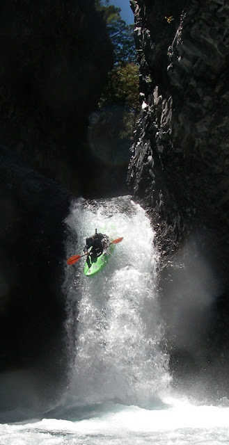Maar nee hoor, integendeel, het is zalig varen, ochtendstond, zonneke, fris water, gewoon zalig. Ook de laatste passages die iets technischer zijn gaan vlot, een walibi slide, een verplichte 4 meter boof naar links en een zeer smal wormkanaal waar het gat op 't eind me toch een chandelleke aansmeert.