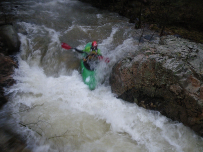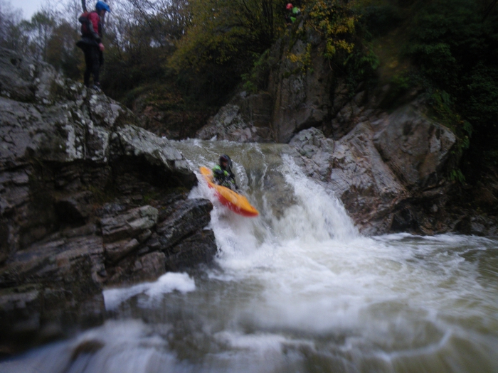 Ook de nodige smalle passages die tot omdragen aanzetten. Indrukwekkend is een 6m stuw met krappe landingszone, portage voor de meesten maar niet voor 't Rekkerken en Mr. Bazooka. Wat verder een krachtige 2m drop en aansluitende schuif, good stuff.