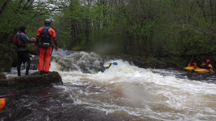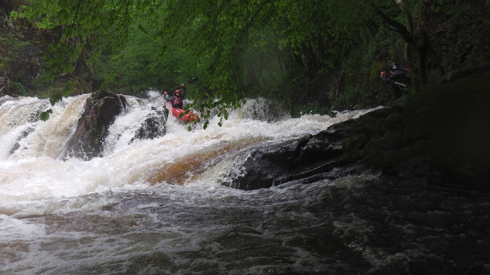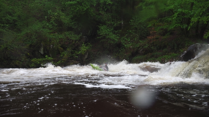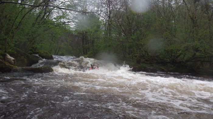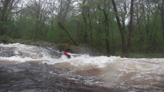 De laatste passage is er al snel, het is een kleine drop gevolgd door een stopperke, door de goede waterstand is deze best nog wel aardig te noemen, hoor ik daar iemand klasse 3+ in de mond nemen, of is het het ruisen van het keerwater?