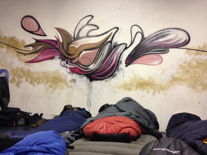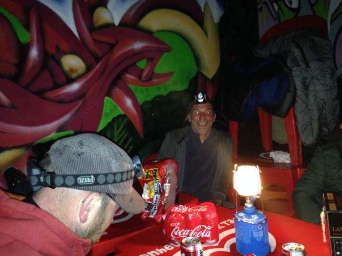 Het weer is helaas omgeslagen, na een hele nacht en dag regen hebben we niet zo veel zin om in de gietende regen onze tent op te zetten, een droog onderkomen zou daarom welkom zijn. Els probeert bij de Huub, helaas, het is ons niet toegestaan om met 12 een kamer van 6 te bezetten, tiens waarom toch? Mozes en Zjebra zijn ook onderweg en Mozes kan met zijn onderhandelingstalenten een lokaaltje op een camping regelen.