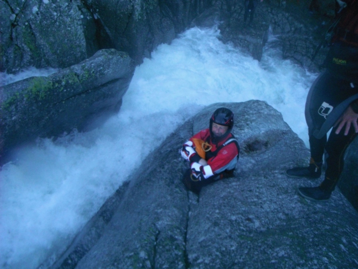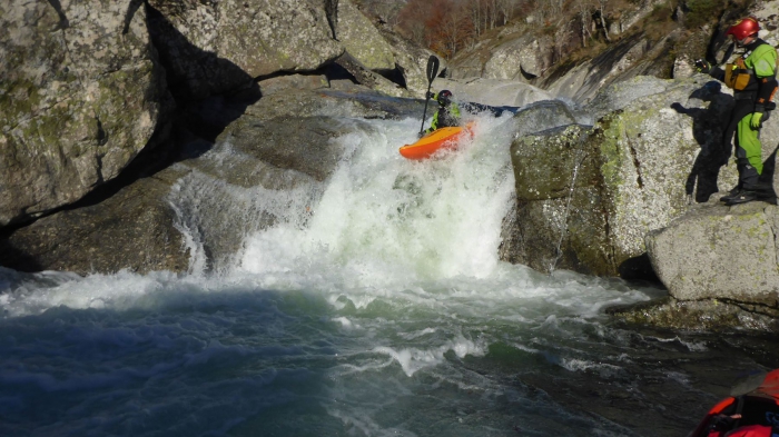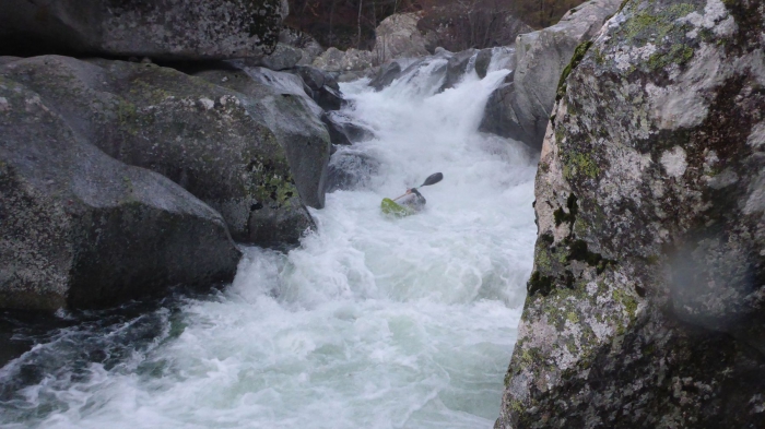 De Dourbie, is zelden te varen, we danken dan ook de Cevenolgoden, voor deze prachtige waterstand. Het wordt ons allen echter al snel gewaar dat het extra pluske geen overschatting is en verschillende malen worden ik en mijn teamgenoten op de proef gesteld, er wordt volop gescout, gerold, gezwommen, omgedragen, beveiligd en touwen geworpen. De prijs is ??n kapotte peddel, ??n verloren peddel en ook ik ben na een totaal on-effici?nte reddingspoging van het rekkertje mijn werptouw kwijt.