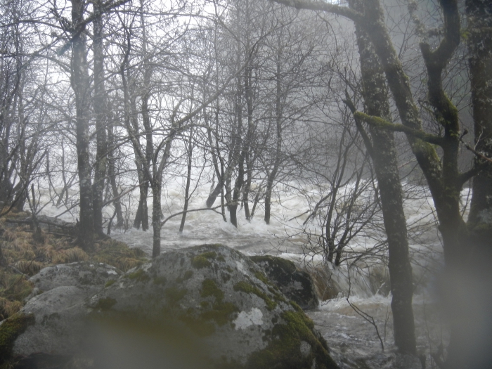From the road you can't actually see the river, you can only see a thick mist coming from down the valley. After a slippery decent we arrive at the bottom of the valley, now we can have a look for the first time on what awaits us.