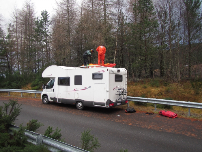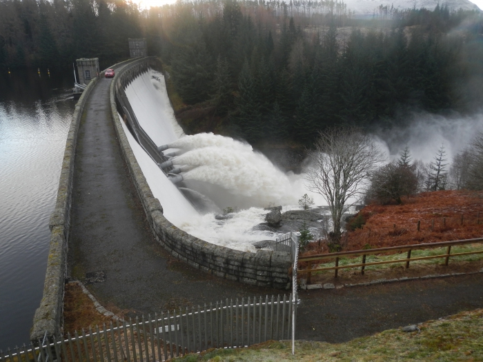 The night had been chilly especially because the heater in the motor-home wasn't working. In the morning there is some frost on the boats, proving the ordeal we went trough during the night. Kevin arranged a guide for us today, his brother Dave is going to babysit us today. First we inspect the Nevis and the Roy, but because of the cold night they do not have enough water, the Spean on the other hand is fed from the dam and has more than enough water. Normally this baby is already juicy with four pipes, now the dam is releasing 6 pipes of hellish cold water and that's not it, because the dam is even overflowing on the top.