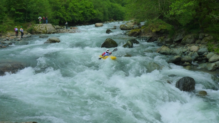 While our good friends are carefully selecting rivers without waters in the Pyrenees, we face another steep ditch running at a healthy flow in beautiful Georgia. Some guys at the campsite tell us we are lucky as a few days earlier, there was even much more water, seems they had a few epics even without Nirjhara crew around...