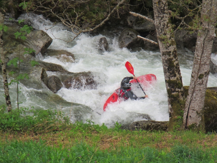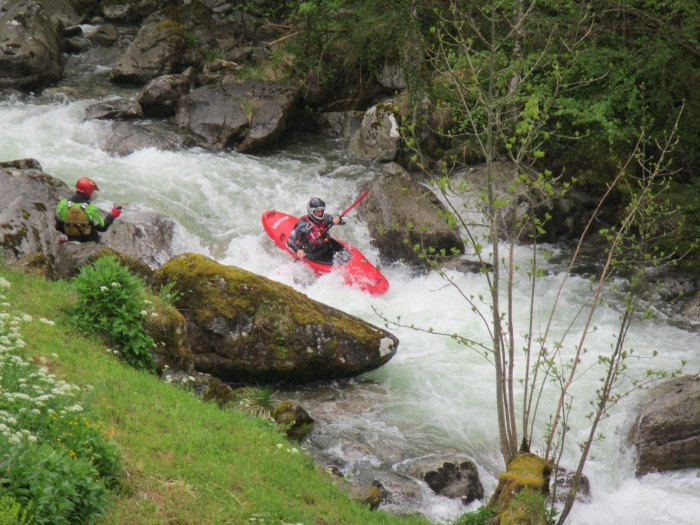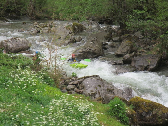 Terug op de rivier zien we iets verder de zijrivier. Deze lijkt momenteel even dik te staan als de corse zelf. Vanaf hier is het waterniveau gewoon perfect.