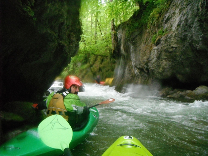 Al vrij snel zien we de rivier vernauwen en rijzen de wandjes omhoog. Van zodra ik in de kloof kijk komen de herinneringen boven. Vorige keer hebben we deze omgedragen en er vertrekt aan het begin van de kloof een paadje. We zouden dus zeker niet de enige vaarders zijn die dit omdragen. We verspillen niet te veel tijd en dragen om.