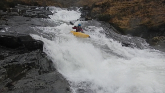 We just finished Etive, great river, paddled it with way too much water, but hey, we wanted water, we got it. So at the take-out of the Etive an other little tributary comes in. Allt A Chaorainn, just some fun slides, saw lots of youtube vids of it where people are scraping down slides on hardly an inch of water. So hey, let's have some fun sliding down.
