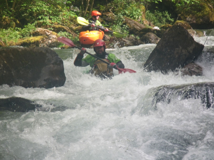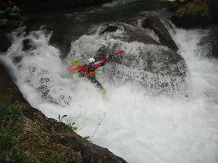 Na het paseren van de Instap van 2 dagen ervoor kwamen we volgens Menno de passage " Rauw Invaren " tegen. Lenny had deze passage ervoor vlekkeloos genomen maar door de vermoeidheid kon hij het niet laten om deze ondersteboven te varen.