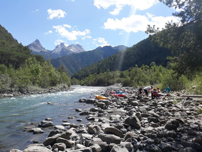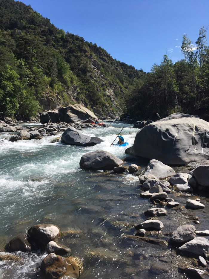 Ubaye, klassiek stuk vanaf Martinet tot Le Lauzet, laag water maar blijft leuk varen.