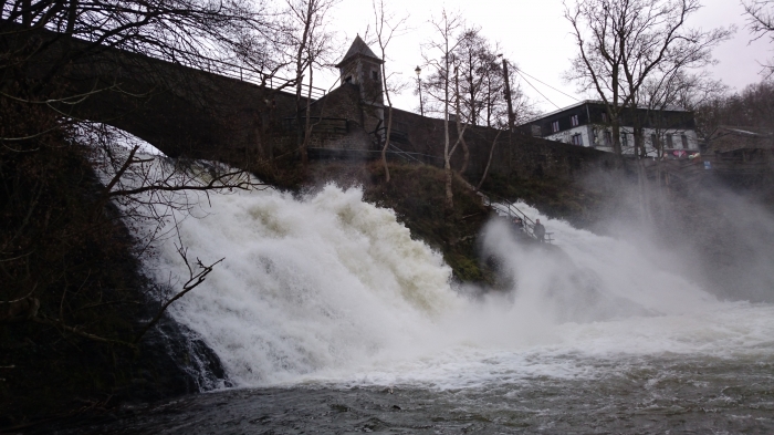 Maar eerst hadden we een dromerig bezoekje gebracht aan Coo. De Ambleve had 11m3/s in Stavelot en 23m3/s in Martinrive, eerder een laag niveau voor Coo, de trap halverwege zag er niet zo glad uit, gggrrrrr.