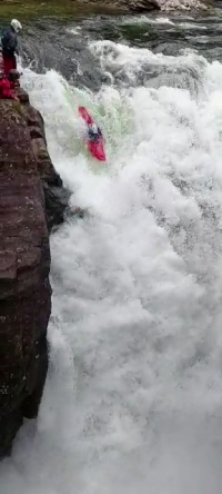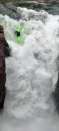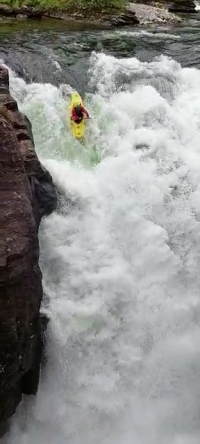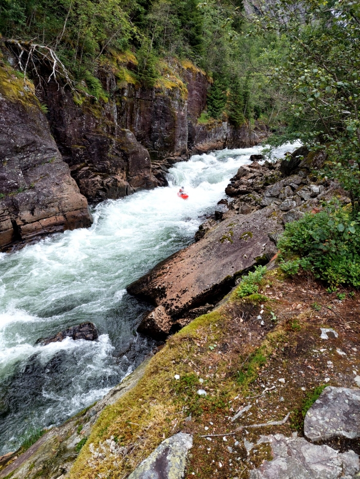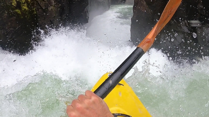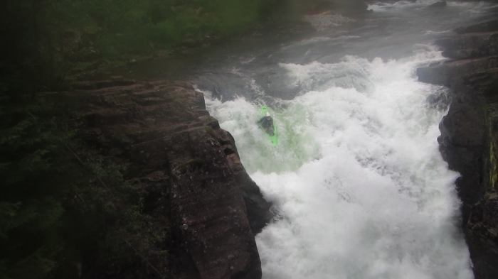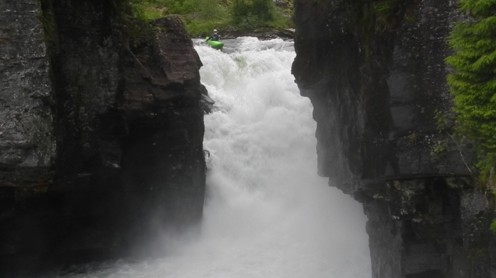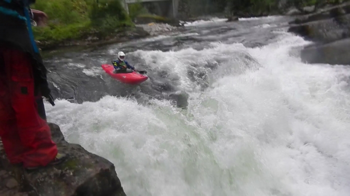 Huck and tuck. De rots rechts in de val duwt me wat naar links net zoals bij Ward maar met wat geluk kom ik toch vrij centraal in de pool boven. Ik kan rollen en genieten. Boooooooyaaaaakaaaaa!