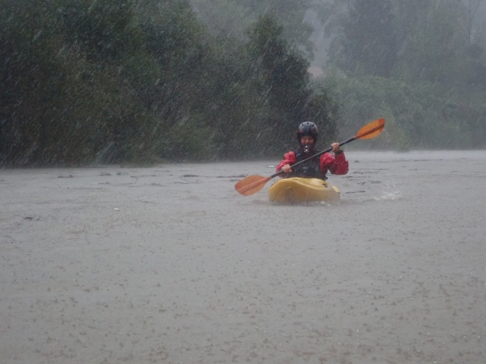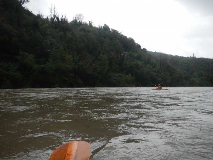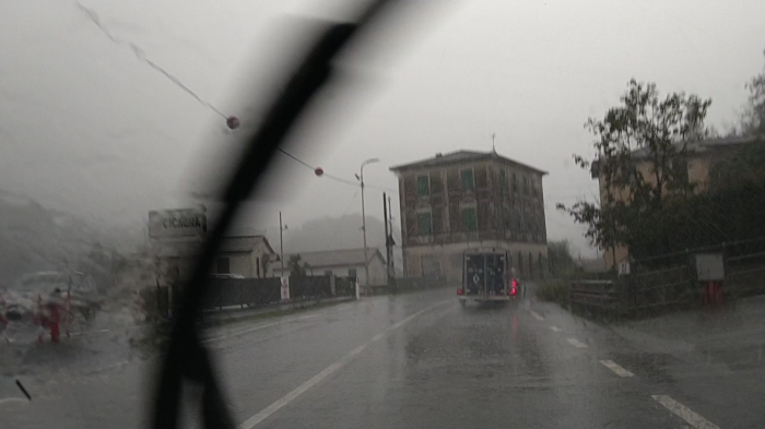 Dagje dat de hemelsluizen zich effe volledig openden. Geen kajak mogelijk alles staat donkerrood in vloed, of toch... Er is nog een klasse 2 stukje op de Entella dat tot in de zee loopt, misschien eens een goed moment om een beek tot in de zee te varen.