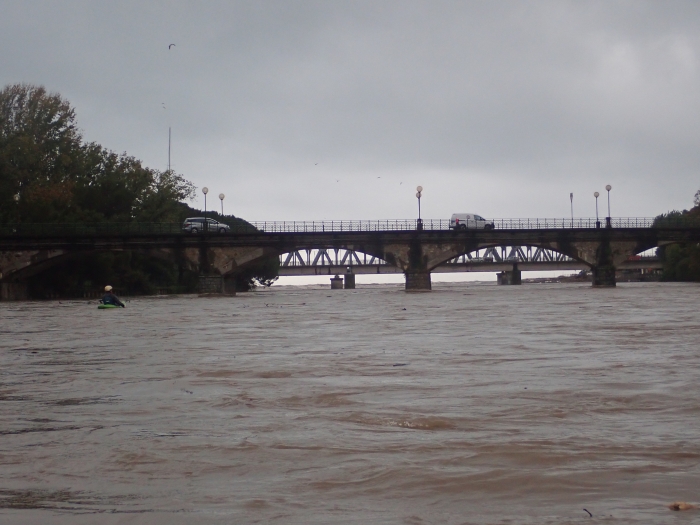 Waar de rivier in de zee gaat, zijn er staande golven, branding of surfgolven die ter plaatse blijven, leuk om te surfen, maar 100m3 water stroming gaat wel onder je boot recht de zee in, als je hier moet rollen ben je rap 20 of 50m de zee in, naah rap naar de kant, dat laatste stukje draag ik wel.