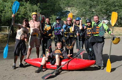 Iedereen vaart de eerste drop goed, maar bij Wim loopt het een beetje fout. Hij mist z'n laatste peddelslag en duikt de verkeerde kant op. Hij wordt teruggetrokken, verdwijnt even in het sop en gaat zwemmen. Birdy recupereert de boot en David werpt van boven een lijntje om Wim uit z'n benarde situatie te helpen.