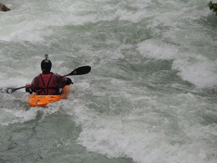 Dit Alara stukje moest en zou beter gaan en had inderdaad een prikkelend effect op ons. Een aantal onder ons namen kajakgewijs een kijkje onder de waterval waarna we samen aan de afdaling begonnen.