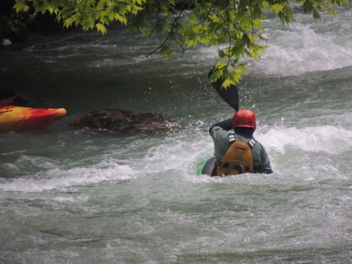 We vaarden vanaf waterval tot aan eerste brug, een klasse 3 stukje onder de gutsende regen alweer.