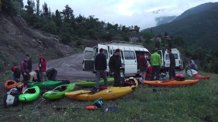 Na de nacht aan de waterval, waar de 2-seconden tentjes hoog en droog op de balkonnetjes van toeristische blokhutjes staan, wordt het vandaag expeditie-dag: first descent van de Alara uppergorge.