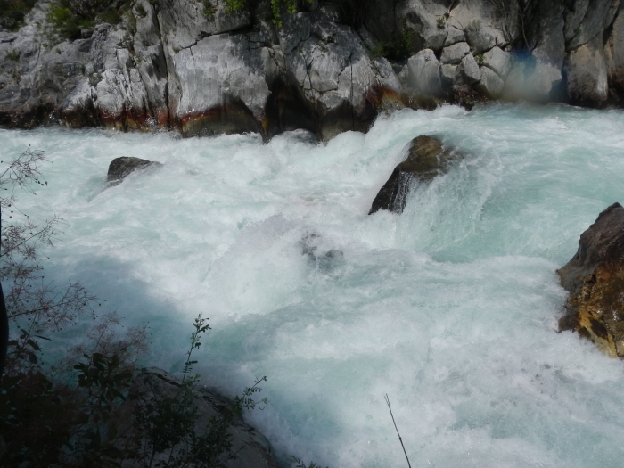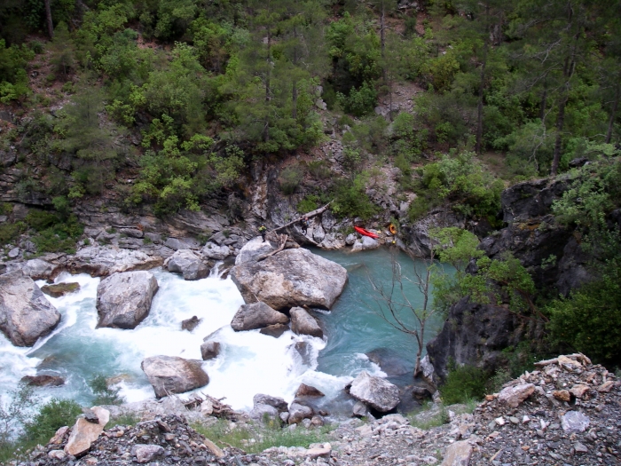 Alvorens we aan de grote Alara kloof beginnen, pikken enkelen nog een stukje van de Kaiserklamm mee (Scheuer, Bruno, Gert, Birdy). Dit is een snel stuk met veel volume tussen de steile wandjes, super kicken, een 4-tal volume versnellingen. Bij de 2de versnelling stond m'n Salto al verticaal, wow. Alles moet ge op 't zicht varen, super snel, dikke golven, veel gespetter, weinig zicht en net altijd op 't laatste moment het dikke gat of de stopper vlak voor je ontwijken.