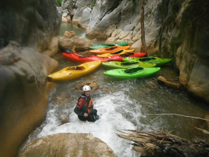 In een mooie granieten kloof wachten we op de rest, de canyonners ;-), deze zijn blijkbaar in een zijriviertje aan het canyonning met kajaks om terug naar de Alara af te dalen.