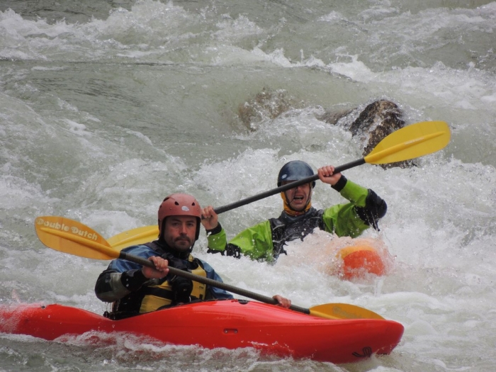 Het rivierwater is echt fris. Eens goed vertrokken wordt het snel duidelijk dat het toch een plezante beek gaat worden. Leuke versnellingen met mooie 'eddy`s'.