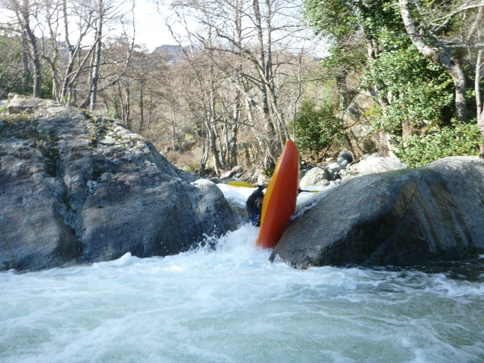Hij had ons goed begeleid maar toen hij aan de beurt was nam hij de steen te hoog waardoor hij achterwaarts tegen de rotsen kwam en uiteindelijk zwom.