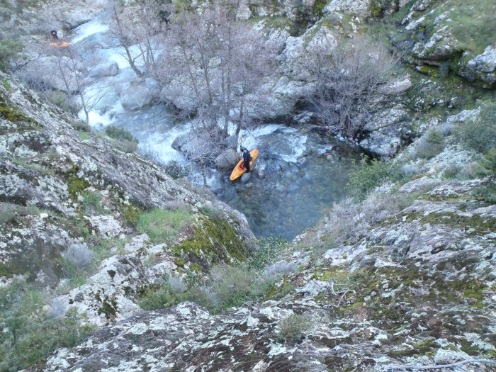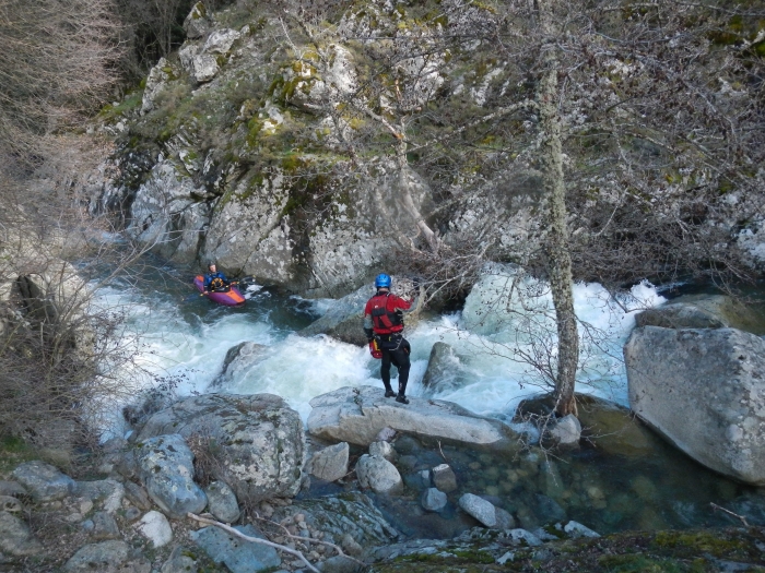 Birdy en Bruno zakken af in de kloof via een werptouw (we hebben 2 werptouwen nodig) en varen uit.