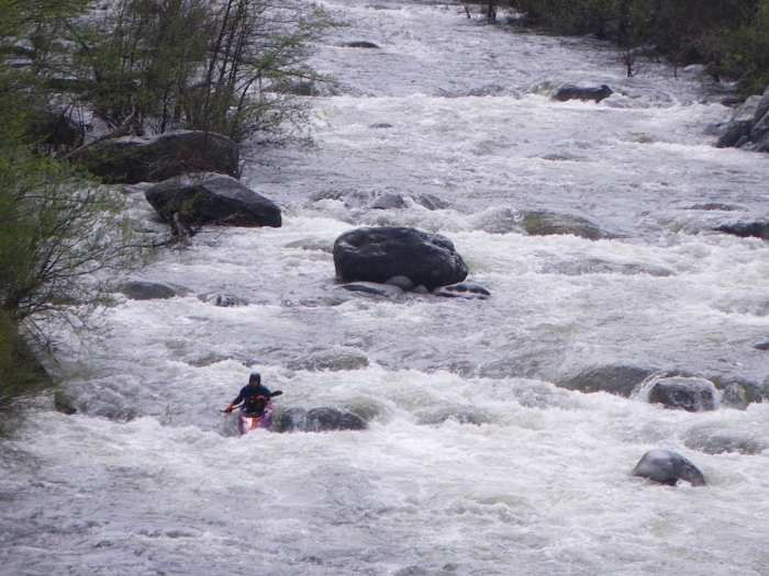 De grote passages dragen we om,te gevaarlijk bij deze waterstand.