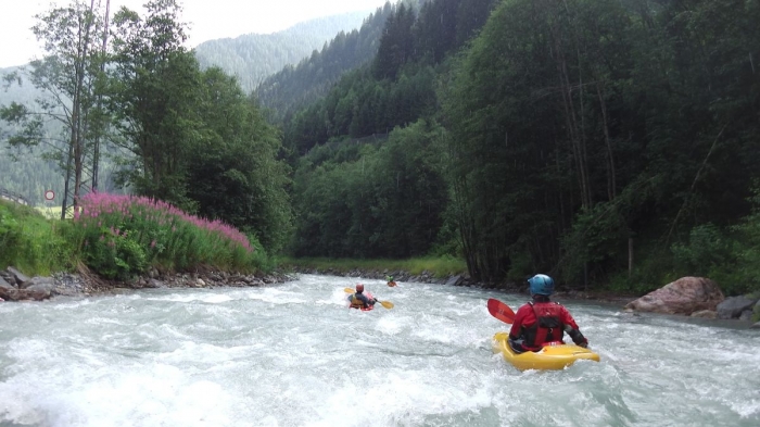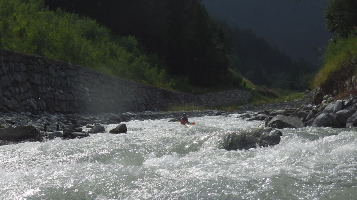 Op de Rosanna bevindt zich stroomafwaarts nog een tweede sectie; de Wolfsschlucht, die te boek staat als een klasse 4. Die willen we varen. Het vreemde is evenwel dat de instap in alle gidsen een paar km verder aangegeven staat dan het uitstappunt van het klassieke stuk waar we ons nu bevinden.