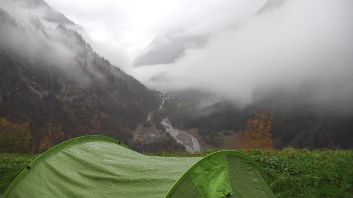 's ochtends zit de vallei potdicht maar als de zon langzaam doorbreekt wordt het uitzicht prachtig. Tot wanneer ons ontbijt verstoord wordt door opdringerige geiten. Mr Guide ontpopt zich tot herder en leidt de kudde de berg af.