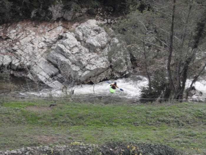 L'Auzène na de sprong tot op de camping aan de Eyrieux