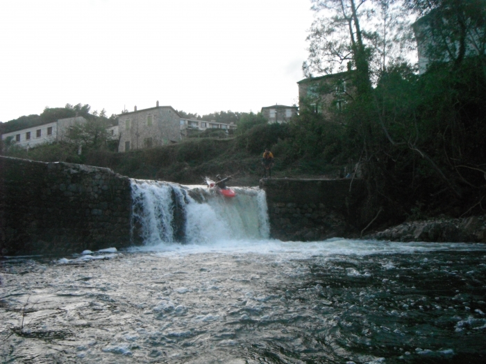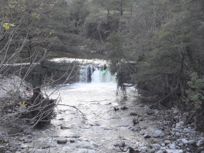 Het ritme zit er echt in en het team komt vlot aan de afsluitende stuw. Onze 2 bunnies zijn met 1 auto gekomen, dus kunnen we nog wat verder varen op de Eyrieux. De hoofdrivier is vrij breed hier, maar we kunnen toch beginnen met wit water, die je met enige verbeelding passage zou kunnen noemen. Spijtig genoeg blijft het hierbij. Het toerisme heeft hier van de rivier een volledige platte bak gemaakt, met af en toe een stuw. Bij het bouwen van de stuw is er telkens een vistrap en ook een kanaaltje voor kayakkers. Totaal oninteressant. Uiteindelijk hebben we 4km platte rivier gevaren en is het pikdonker als we met onze bootjes onderaan de camping aankomen.