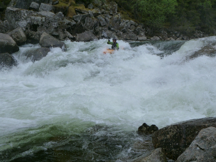 Onze waterstand was waarschijnlijk te hoog om het moeilijkste stuk tot Gol uit te varen maar ook het stuk daarboven is redelijk action packed met een stevige variatie in rapids en enkele drops voor de die hards (niet wij dus).