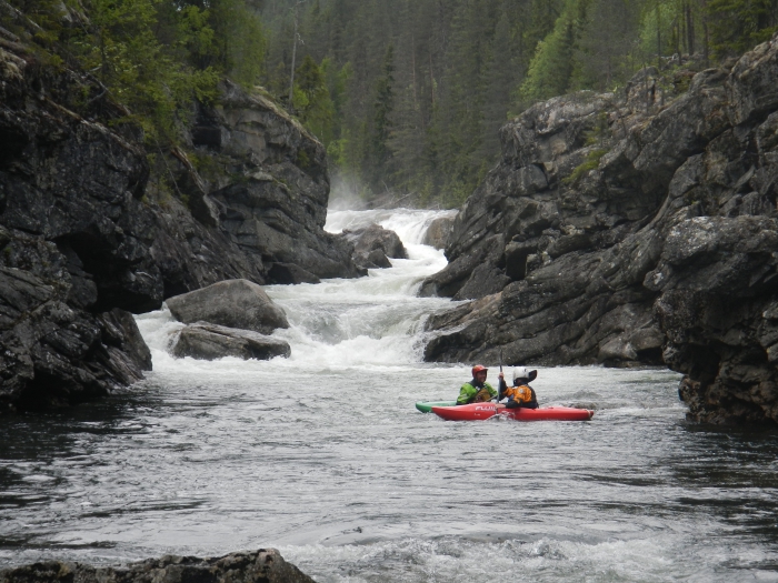 Verder naar Gol en zonder idee van peilschalen beslist dat er wel water moest zijn in de headwaters van de Hemsil zodat Ward direct zijn treinticket naar Bergen tegen een miniprix kon kopen. De werkelijkheid bleek nog mooier te zijn met ook water in de Hemsil zelf, blijkbaar een van de toprivieren in Noorwegen maar zelden water door een groot stuwdamcomplex. Zoals vaak bleek de waterstand hoger dan initieel ingeschat vanop de baan en het eerste klasse 3 stuk zette iedereen al op scherp. Jan, voor het eerst terug in de boot na een lelijke pin op de Goyst moest even verder vaststellen dat rollen zonder goed vast in de boot te zitten toch niet zo eenvoudig is en besloot direct om te dragen tot de volgende wegbrug. Daarmee miste hij wel een fantastisch stukje kloof waar de stevige waterdruk de adrenaline en stress tot ongekende hoogtes opvoerde. De gids sprak van drops terwijl wij enkel golven en gaten tegenkwamen. Vermeldenswaard een synchrone rol door Wim en Ward die het buddy systeem blijkbaar heel letterlijk interpreteerden.
