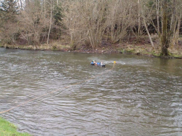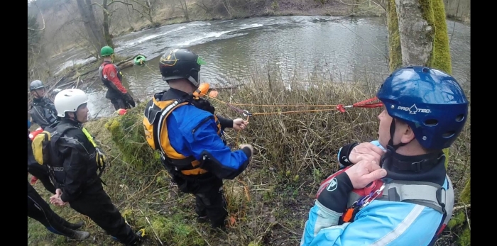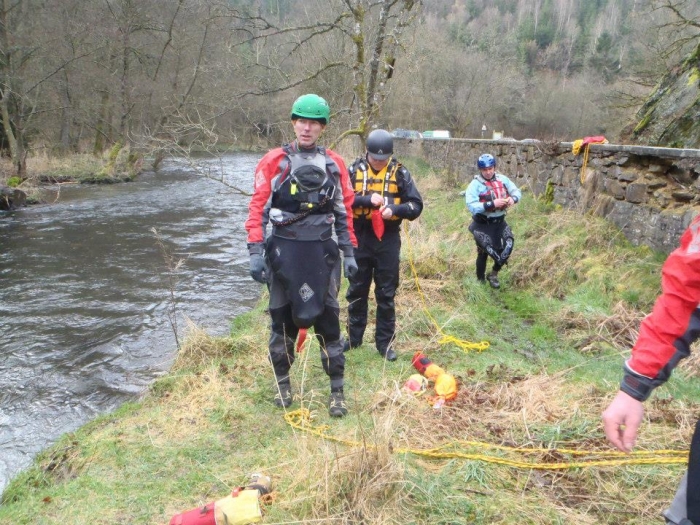Als een van de laatste oefeningen dan een tensioned diagonal opgezet, ideaal om man en materiaal van een kant van de rivier naar de andere kant te krijgen al dan niet bewusteloos of gekwetst.