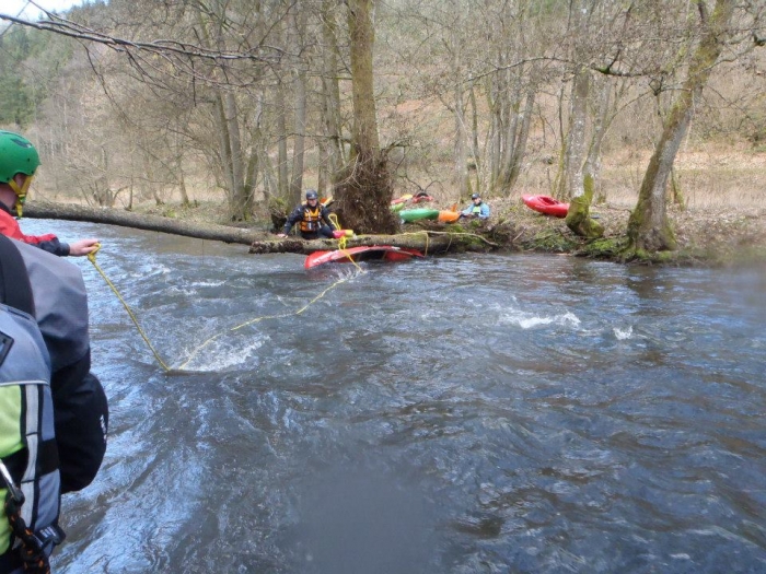 Op dan naar het volgende onderwerp, hoe maak je een gepinde kajak weer los. Erg nuttig om te trainen gezien onze met bomen bezaaide Ardense beken.