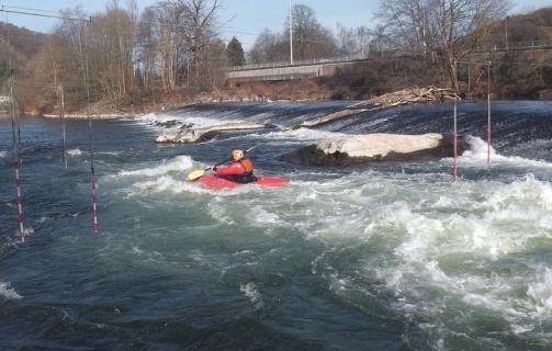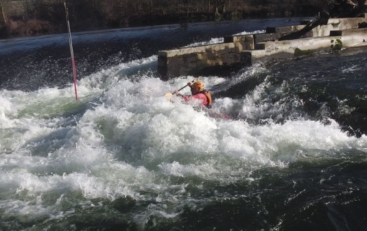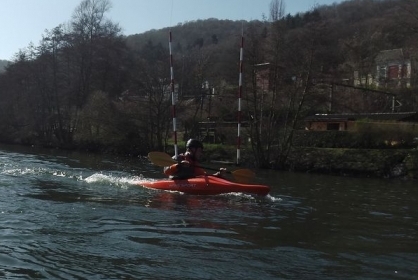 Jurgen vaart een poortje. Rechtdoor varen is voor hem een grotere uitdaging.