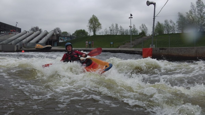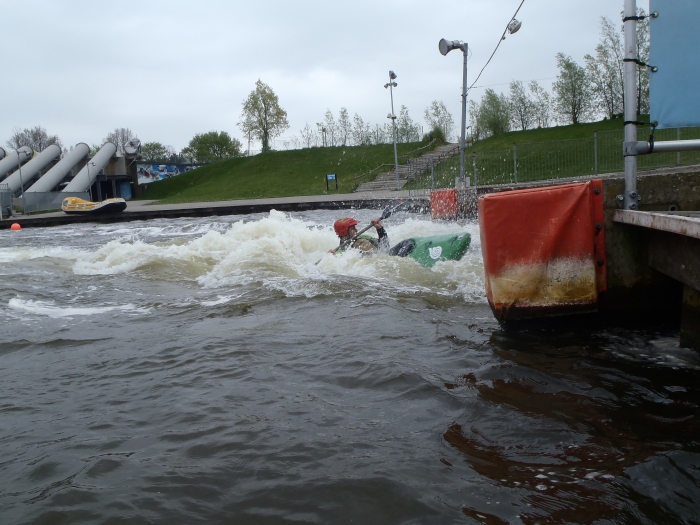 ikzelf ben met de creeker en heb hier dus wat minder last van . Wat niet wel zeggen dat het relaxt varen is. Het debiet maakt dat je behoorlijk stevig aan de peddel moet sleuren. Na een uur voelen we de vermoeidheid al de kop opsteken en zijn we blij met onze training.