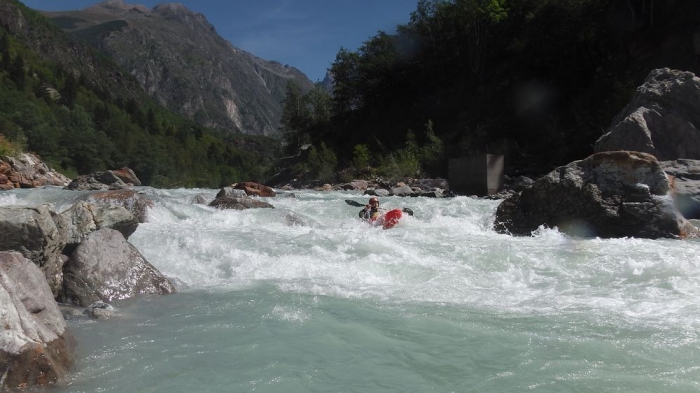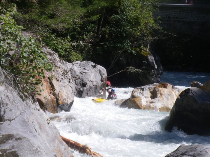 Het invaren gaat redelijk vlot tot bij een iets langer verblokt stuk ik heb een rots verkeerd ingeschat.