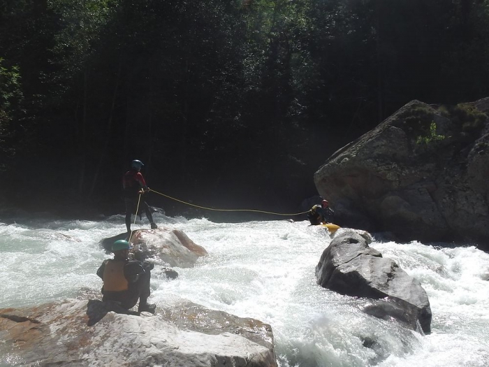 Maar we staan even later op onze eindbestemming en bij de verkenning toont Mr guide ons waar de klasse 4+ stopt en de klasse 5 begint.